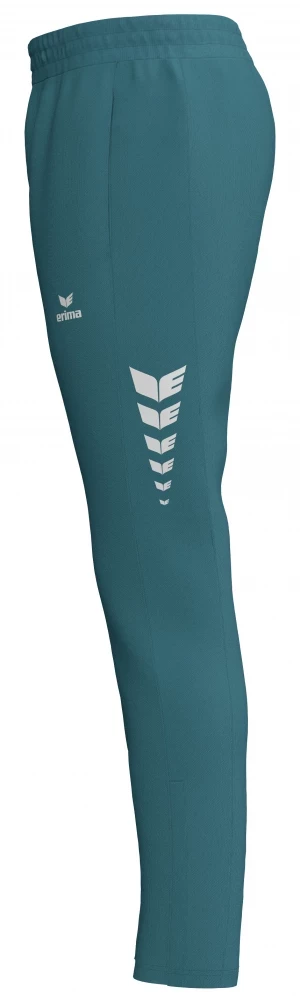 Le tissu fonctionnel de ce pantalon de survêtement régule l'humidité pour que tu puisses te concentrer pleinement sur ton entraînement, même lors d'exercices intenses. Grâce à sa coupe ajustée et à sa taille élastique avec cordon de serrage, le pantalon tient parfaitement en place sans glisser. Les poches latérales zippées offrent suffisamment de place pour tes objets de valeur. La fermeture éclair au bas des jambes est également très pratique. Les empiècements latéraux avec l'imprimé ERIMA Wings apportent une touche de style. Le clou : le modèle blanc dispose d'un traitement spécial anti-salissures qui empêche la saleté de pénétrer facilement dans le tissu.
