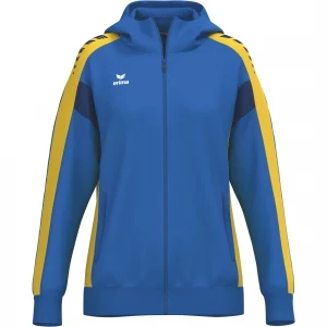 Die Trainingsjacke mit Kapuze vereint ein modernes Design und hohe Funktionalität. Für ein angenehmes Tragegefühl sorgen die atmungsaktive Interlock-Innenseite, die gefütterte Kapuze und der Kinnschutz am Reißverschluss. Der reguläre Schnitt und die überschnittene Schulter verleihen der Jacke einen lässigen Look, der durch den trendigen ERIMA Wings-Druck auf den Schultern abgerundet wird. Super praktisch sind die seitlichen Reißverschlusstaschen, um deine Wertsachen sicher zu verstauen.